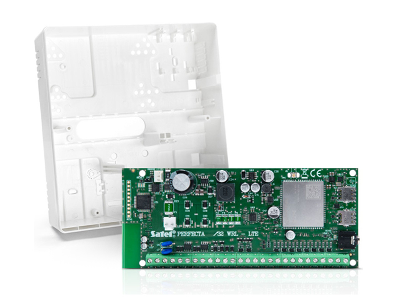 SATEL PERFECTA 16 LTE vezérlőpanel OPU-4P házban, külső LTE antennával