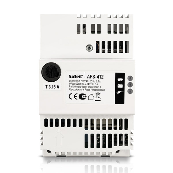 A SATEL APS-412 kialakítása lehetővé teszi a 35 mm-es DIN sínre történő szerelést, illetve kompatibilis az OPU-3 P, OPU-4 P és OPU-4 PW típusú SATEL házakkal is, így rugalmas telepítést biztosít különböző rendszerekben. A működési hőmérséklet-tartomány -10°C és +55°C között van, ami alkalmassá teszi széles körű ipari és biztonságtechnikai alkalmazásokra.