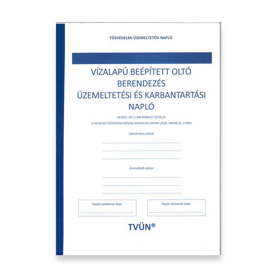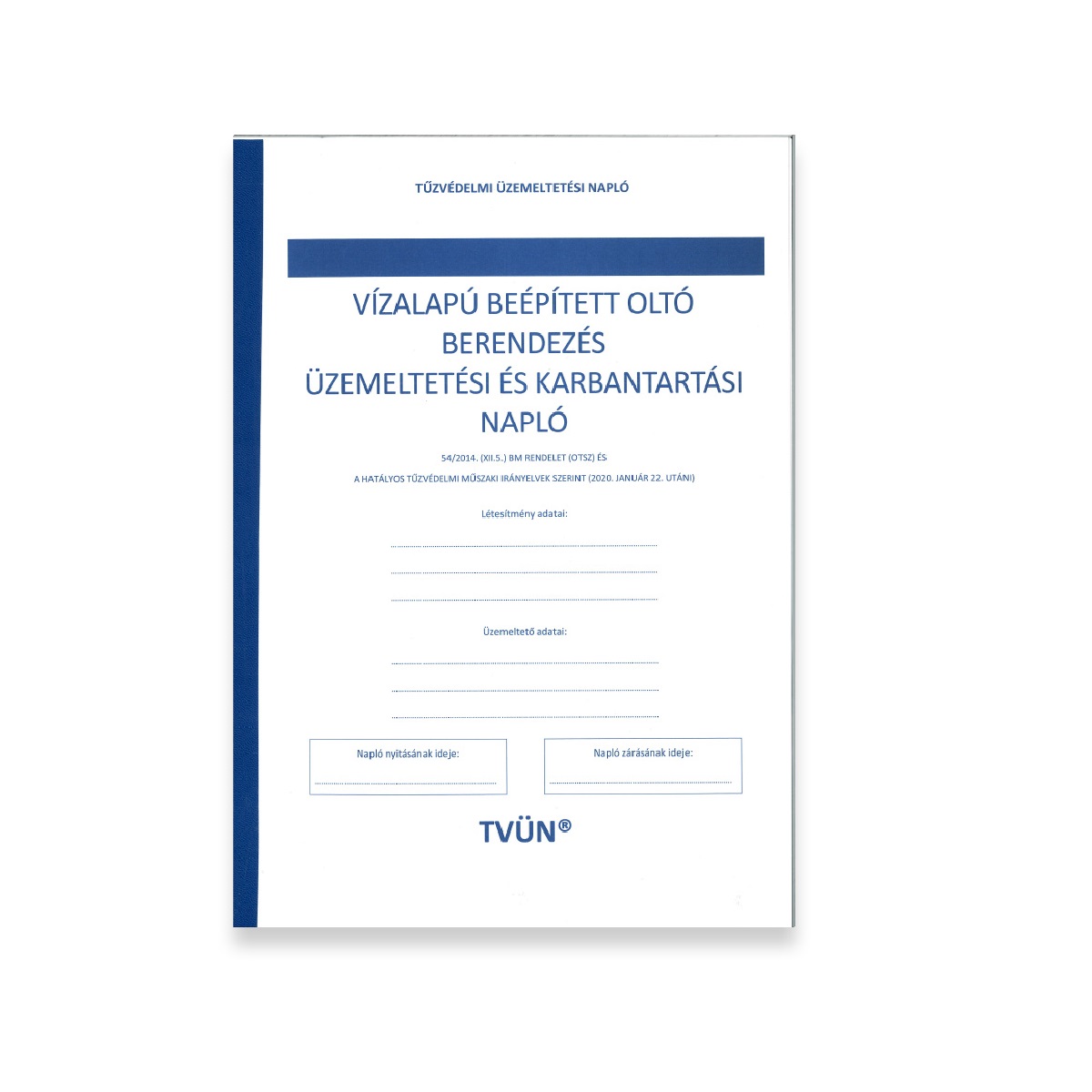 MAXFIRE Vízalapú beépített tűzoltó berendezés üzemeltetési és karbantartási napló (sprinkler oltórendszer).